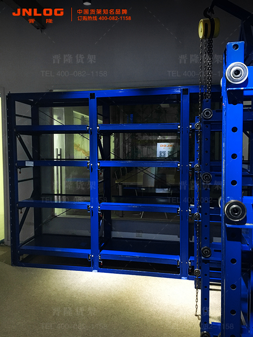产品简介:模具货架也可称之为模具架或抽屉式货架,主要存放各种模具物品,根据层载能力要求分为轻型模具货架和重型模具货架。货架顶部可配置移动葫芦车,以方便模具的起吊。